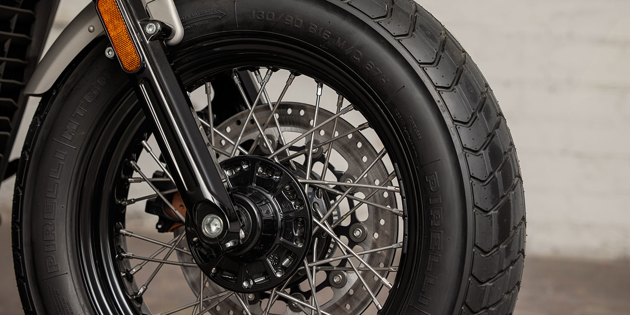 ホイール 16" x 3.5" フロント及び 16" x 3.5" ワイヤーホイール、ブラックリム